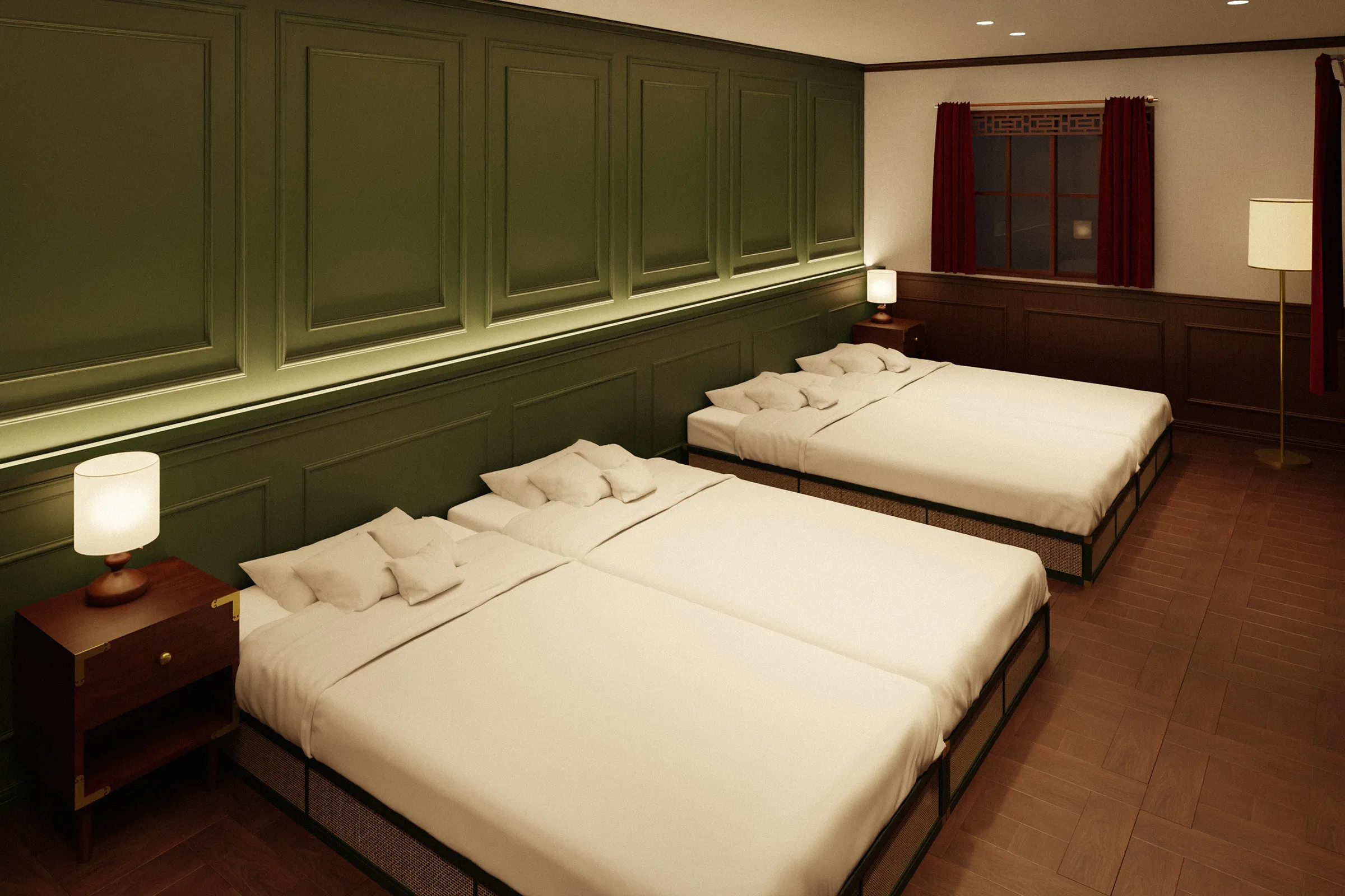 - ベッド:ハリウッドサイズ(W2000mm×L2000mm)×2、
