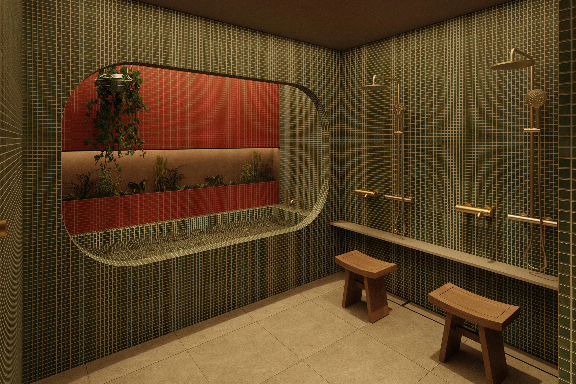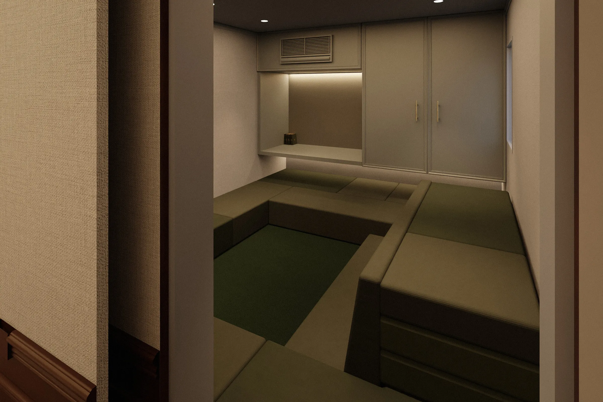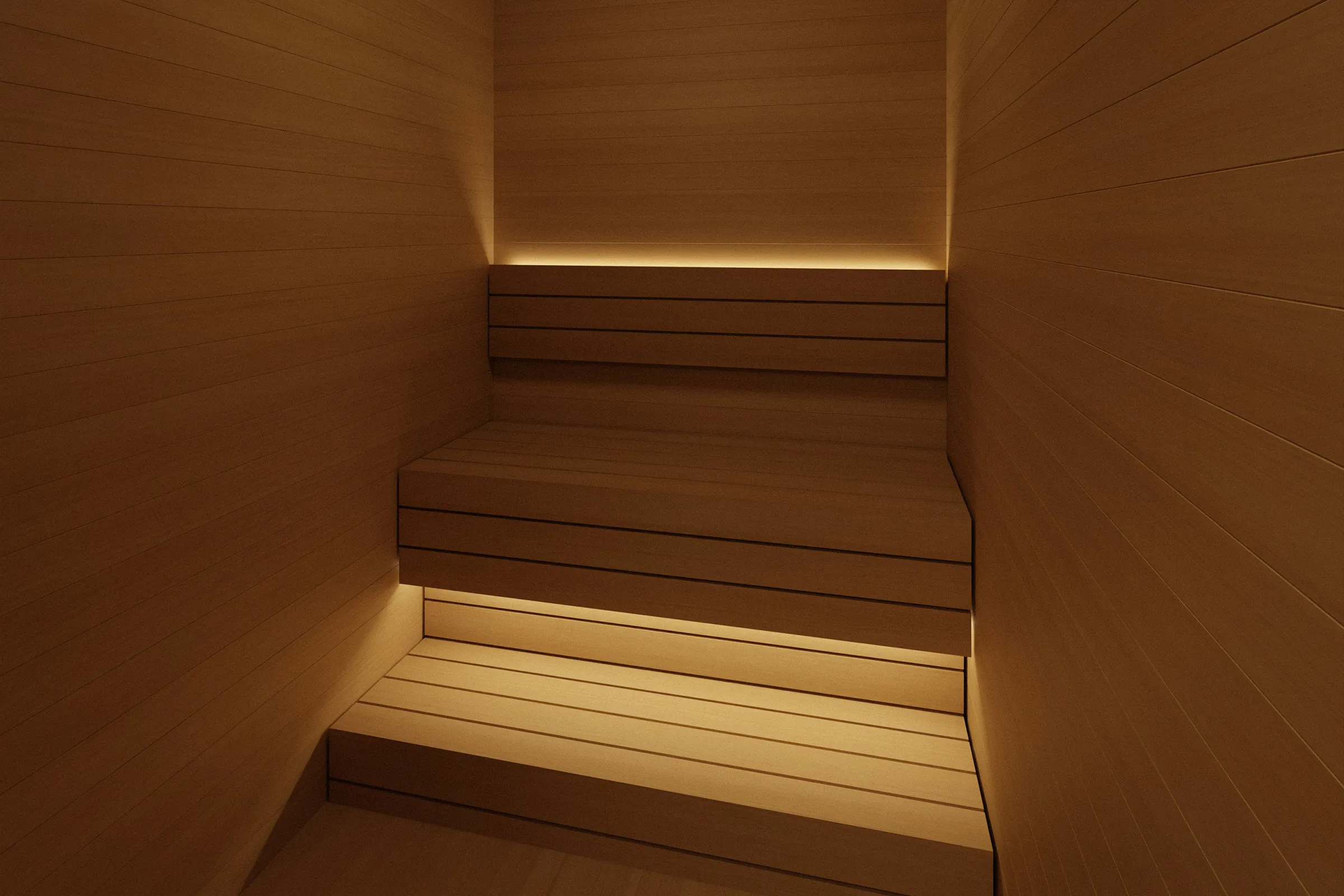 仲間や家族と気兼ねなく入れる専用サウナは、